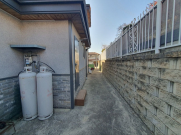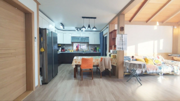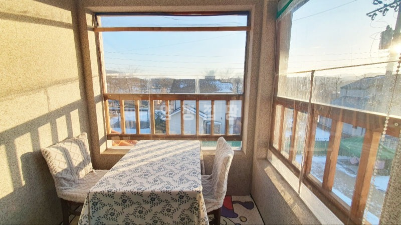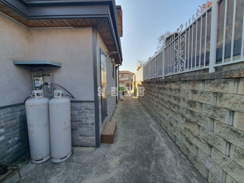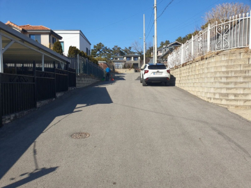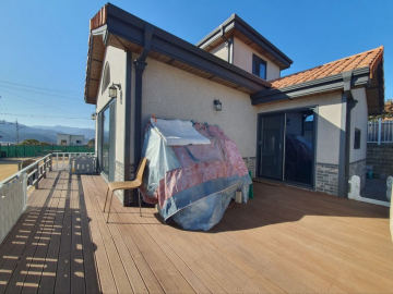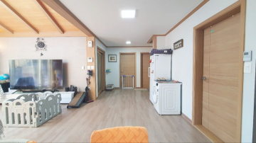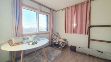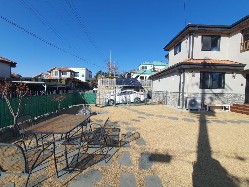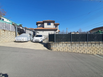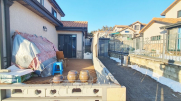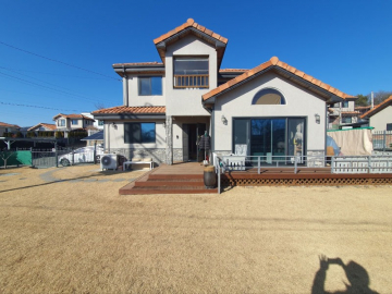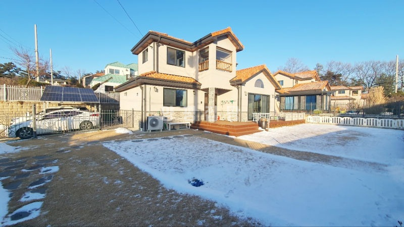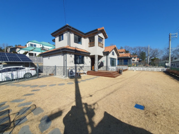 주택은 남향으로 배치되어 채광이 우수하며, 1층은 높은 층고의 거실과 주방, 드레스룸이 있는 넓은 안방으로 구성되어 있습니다. 2층에는 미니 거실과 방 2개, 그리고 벚꽃길과 마을 풍경이 내려다보이는 전망 좋은 테라스가 있어 여유로운 휴식을 즐기기에 좋습니다. 상수도와 오수관로가 직관으로 연결되어 있고 LPG 난방을 사용하여 기반 시설 또한 쾌적합니다.