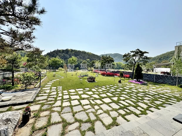 상수도가 연결되어 있어 생활 편의성이 높으며, LPG 보일러와 시스템에어컨이 설치되어 사계절 쾌적한 주거가 가능합니다. 외부에는 잔디마당과 조경수, 화단이 잘 조성되어 있고, 주차장과 마당은 돌담과 디딤석으로 안정감 있게 구성되어 있습니다.