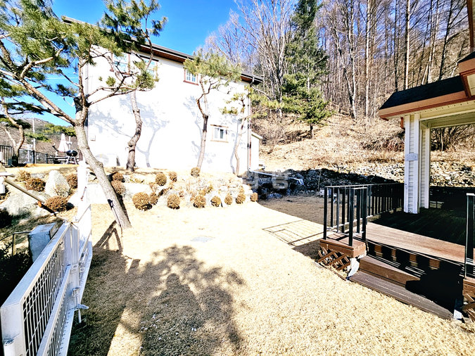 마당은 자연석 석축 공사가 잘 되어 있고, 오랜 시간 자리를 잡은 멋진 소나무와 잔디 정원이 어우러져 고즈넉한 분위기를 풍깁니다. 주택 옆으로는 1층 창고 공간이 넉넉하여 수납하기 좋으며 야외 주차 공간도 마련되어 있습니다. 용문 시내와 차량 10분 거리로 접근성도 무난하며, 3억 초반의 부담 없는 가격으로 숲세권 알땅 전원주택을 찾으시는 분들에게 추천합니다. 식수는 지하수를, 오수 처리는 개별 정화조를 사용합니다.