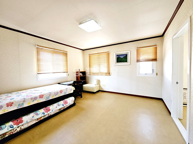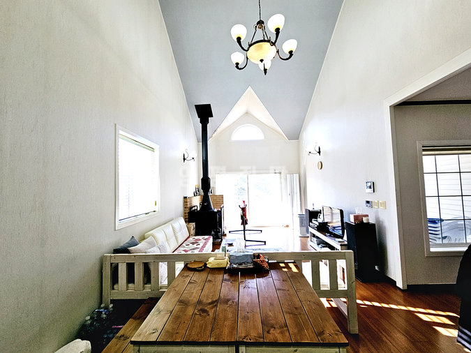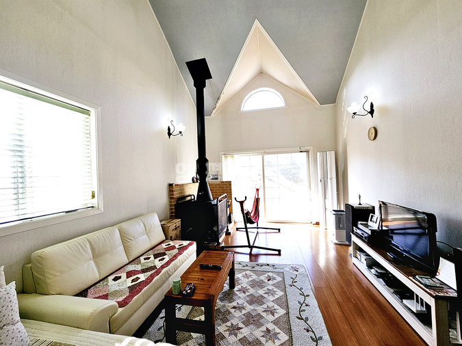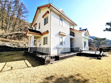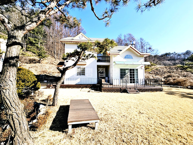 2003년에 준공된 경량철골 구조의 2층 주택으로, 현재 주인분이 주말주택으로 사용하며 관리해왔습니다. 1층에는 방 2개와 거실, 주방, 욕실이 있고, 2층에는 테라스와 연결된 방 1개와 욕실이 있어 공간 활용이 좋습니다. 거실에는 운치 있는 벽난로가 설치되어 있고 난방은 유지비가 저렴한 심야전기를 사용합니다. 연식이 있다 보니 내부 인테리어는 매수 후 취향에 맞춰 리모델링을 하신다면 훨씬 더 가치 있는 집으로 재탄생할 것입니다.