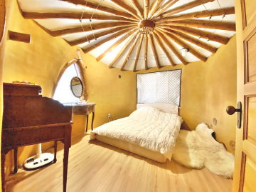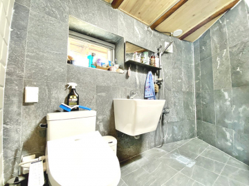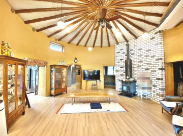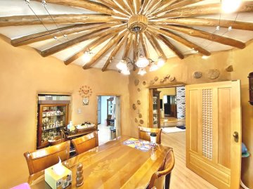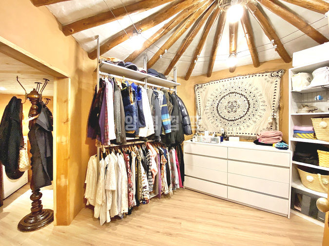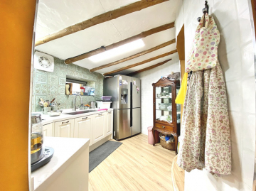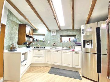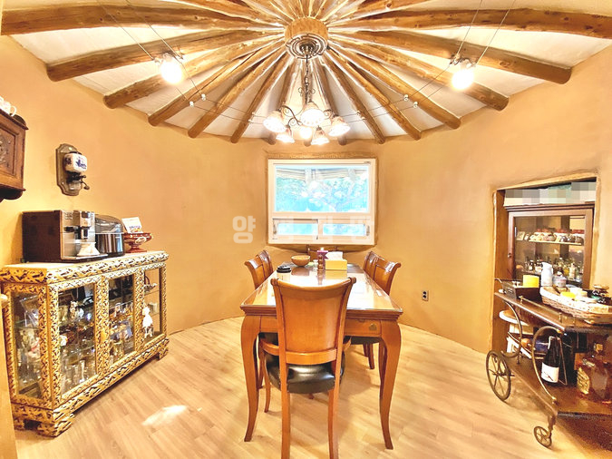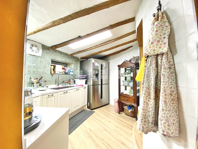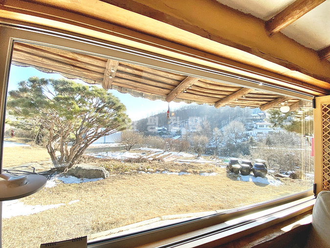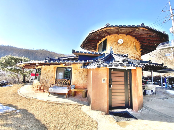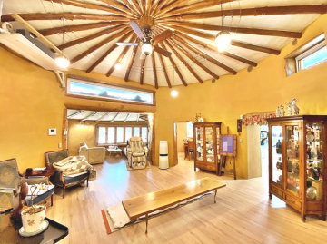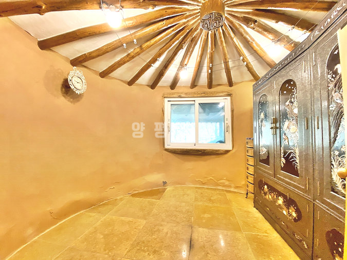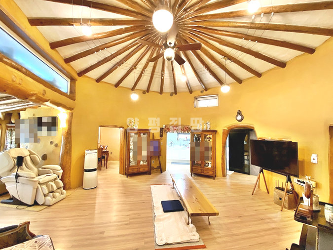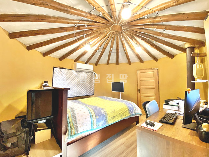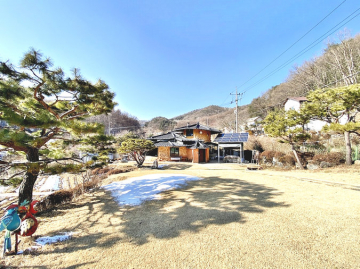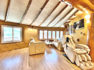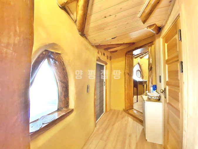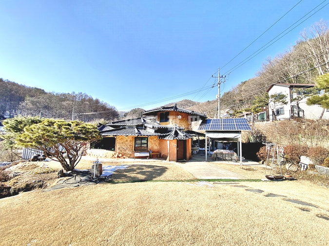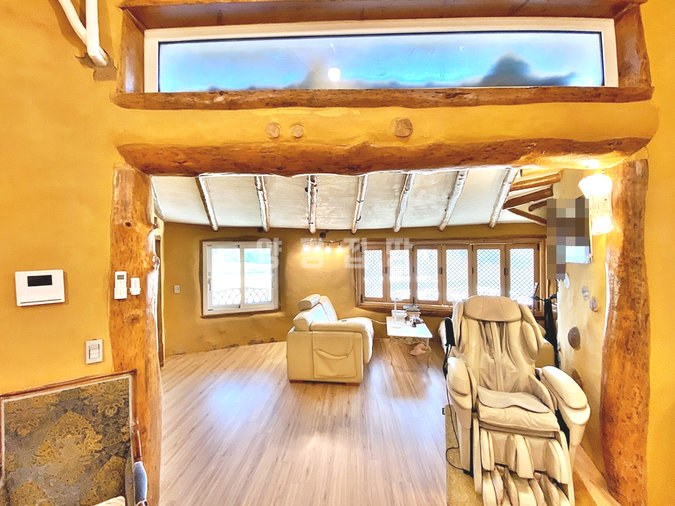 2004년에 준공되었으나, 현 소유주가 매입 후 약 2억 원을 들여 내외부를 황토로 미장하고 지붕을 칼라강판으로 교체하는 등 대대적인 리모델링을 마친 상태입니다. 거실과 방 천장은 서까래가 노출된 한옥 스타일로 멋스러움을 더했고, 벽난로와 천장형 에어컨이 설치되어 있어 실용성까지 갖췄습니다. 1층에는 방 2개와 욕실, 거실, 주방이 있으며, 특히 안방은 전통 방식의 아궁이 황토 온돌방으로 시공되어 건강 관리와 찜질을 즐기기에 안성맞춤입니다. 2층에도 방 2개와 욕실이 있어 4인 이상 가족이 거주하기에도 넉넉합니다.