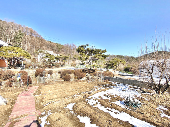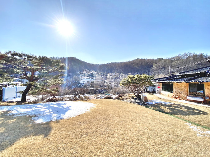 양평군 용문면 덕촌리에 소재하는 힐링 전원주택으로, 산세로 둘러싸인 아늑한 소규모 마을 내에 위치하고 있습니다. 총 421평의 넓은 토지는 2단으로 구성되어 있어, 윗단은 주택과 잔디 마당으로, 아랫단은 텃밭과 넉넉한 주차 공간으로 활용 중입니다. 남동향으로 배치되어 멀리 산을 바라보는 탁 트인 전망을 자랑하며, 주변 간섭 없이 조용하게 휴식을 취하기 좋은 입지입니다.
