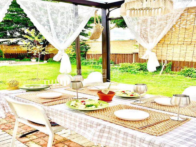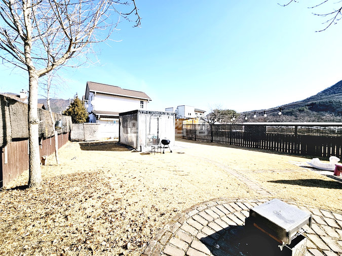 본 주택은 기본 가전과 가구 등 내부 집기가 풀옵션으로 갖춰져 있어 세컨드 하우스처럼 가볍게 몸만 들어오셔도 생활이 가능합니다. 2층 테라스에서는 흑천 조망을 감상할 수 있고, 잘 가꾸어진 잔디 정원과 소나무 조경, 천막 온실, 캠핑 화롯대까지 구비되어 있어 낭만적인 전원생활을 즉시 즐기실 수 있습니다.