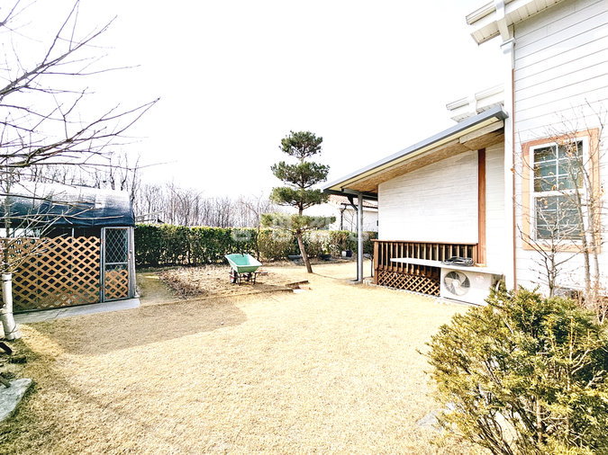 본 매물은 경기 양평군 지평면에 위치한 대지 면적 약 220평, 건물 면적 약 39평의 정원이 아름다운 목조주택입니다. 거실 기준 남서향으로 자리 잡아 일조량이 풍부하며, 평탄한 지형 위에 깔끔하게 관리된 소나무와 잔디 조경, 화단식 텃밭을 갖추고 있어 전원생활의 로망을 실현하기에 안성맞춤입니다.