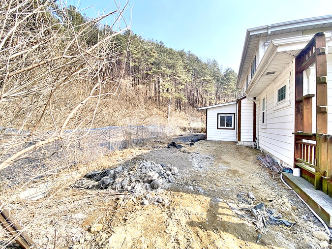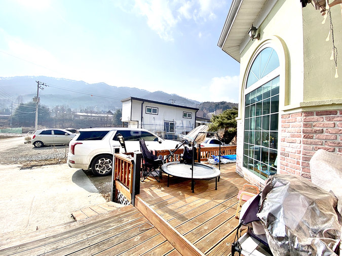 약 210평의 넓은 대지는 주차 공간과 정원, 텃밭으로 알차게 구분되어 있습니다. 현관 앞 포치와 넓은 목재 데크는 주변 경관을 감상하며 여유를 즐기기에 좋고, 야외 수도 시설이 완비되어 마당 관리도 수월합니다. 잡초 방지 매트와 자갈로 정돈된 앞마당은 실용성을 더해주며, 소유주가 직접 관리한 정원수들이 주택의 품격을 높여줍니다