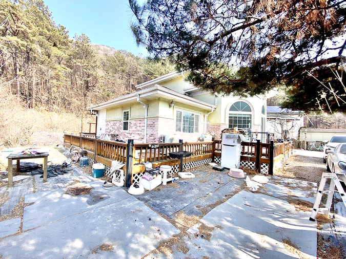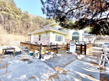 주택은 2009년 준공된 튼튼한 목조 구조로, 총 50평이 넘는 넉넉한 실내 공간을 자랑합니다. 1층에는 넓은 거실과 주방, 안방이 배치되어 있으며, 2층에는 테라스와 연결된 방들과 보조 거실이 있어 가족 간 독립적인 생활이 가능합니다. 심야전기보일러를 사용하여 유지 관리의 경제성을 높였으며, 내외부 모두 정갈하게 관리되어 고즈넉한 매력이 돋보이는 집입니다.