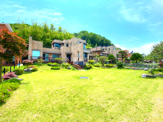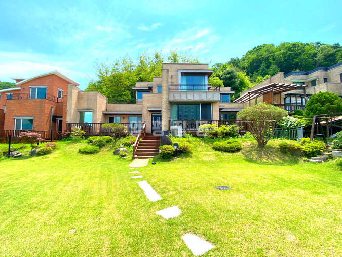 양평군 강하면 전수리에 위치한 2025년 준공 신축 전원주택입니다. 남한강을 북향으로 시원하게 내려다보는 탁월한 조망권을 갖추고 있으며, 철근콘크리트 구조로 견고하게 지어진 약 58평 규모의 대저택입니다. 차량 2대를 안전하게 보관할 수 있는 전용 주차 박스가 완비되어 있으며, 주차 후 대문을 통해 마당으로 진입하는 프라이빗한 동선이 돋보입니다.