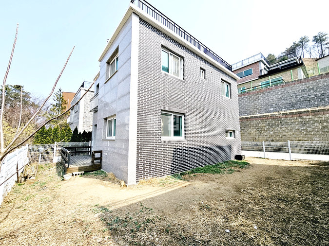 주택은 2층 규모에 별도의 옥탑 공간과 옥상을 갖추고 있어 공간 활용도가 매우 높습니다. 1층은 방 1개와 거실, 주방으로 구성되어 동선이 효율적이며, 2층에는 방 2개와 파우더룸이 마련되어 있어 가족 간의 독립적인 생활이 가능합니다. 서향으로 배치된 거실 창을 통해 탁 트인 개방감을 누릴 수 있으며, 주택 전면의 아담한 데크와 잔디 마당은 전원생활의 여유를 더해줍니다.