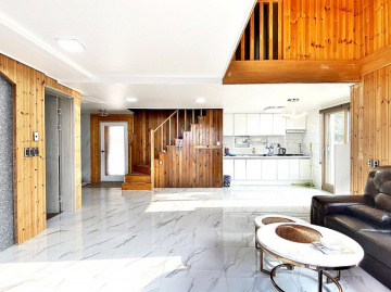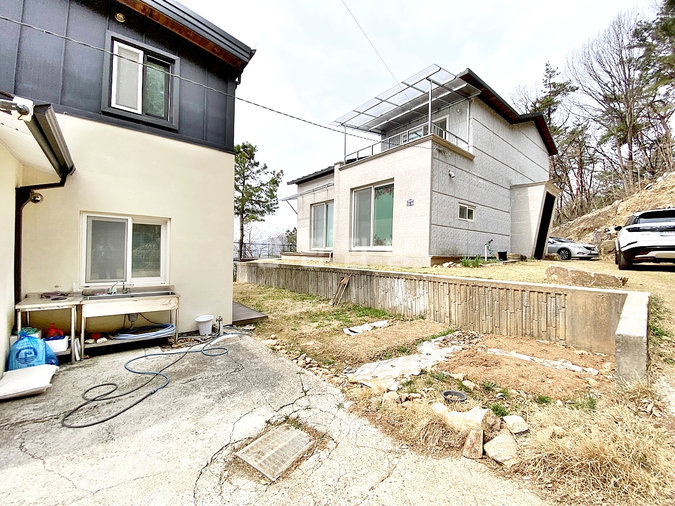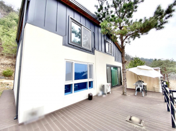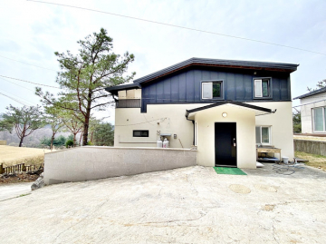 양평군 옥천면 신복리 소규모 전원마을 상단에 위치하여 탁 트인 조망권을 자랑하는 신축급 전원주택입니다. 2021년에 준공된 이 주택은 1층 철근콘크리트, 2층 강파이프 구조로 견고하게 지어졌으며, 모던한 징크와 석재 외장으로 마감되어 세련된 외관을 유지하고 있습니다.