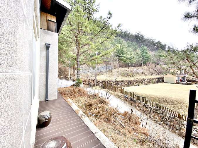 도로와 연결된 주택 뒤편 포장 마당을 통해 편리하게 주차하고 현관으로 진입할 수 있는 구조이며, 주택 전면에는 조경석 축대 위로 넓은 목재 데크와 철재 난간이 설치되어 여유로운 실외 활동이 가능합니다. 옥천면사무소 생활권을 차량 10분 내외로 이용할 수 있는 편리한 입지 조건까지 갖추었습니다. 합리적인 가격에 조망 좋은 철콘 주택을 찾으시는 분들께 적극 추천드립니다. 현재 임차인이 거주 중이나 협의를 통해 입주 가능합니다.