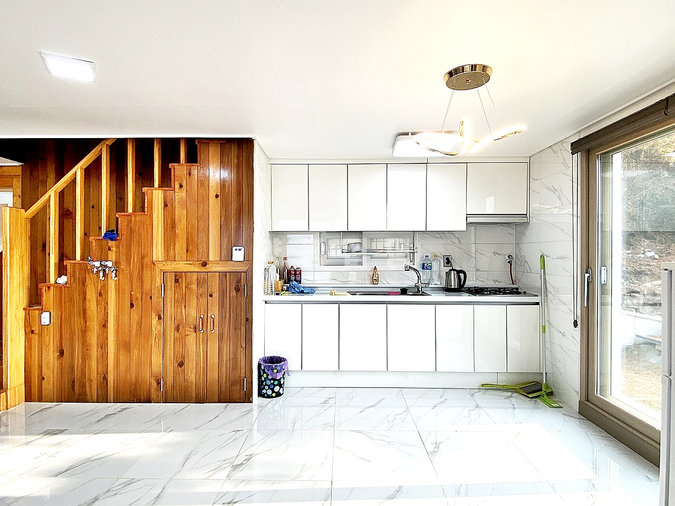 기존 4억 원에 진행되던 매물을 빠른 매도를 위해 3억 2천만 원으로 파격 인하하여 가격 경쟁력이 매우 뛰어납니다. 실내는 1층과 2층 각각 독립적인 거실과 방, 욕실, 그리고 편리한 동선의 파우더룸을 갖추고 있어 공간 활용도가 높습니다. 특히 방 3곳 모두 붙박이장이 기본 설치되어 수납 걱정이 없으며, 거실에서 파우더룸과 욕실로 직접 이어지는 구조가 매우 효율적입니다.