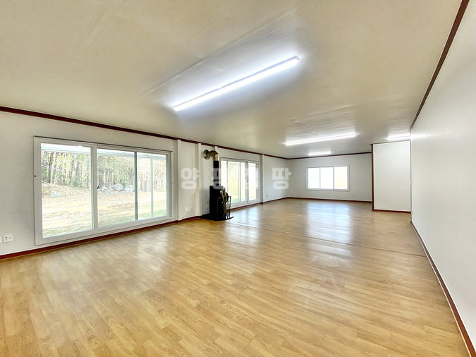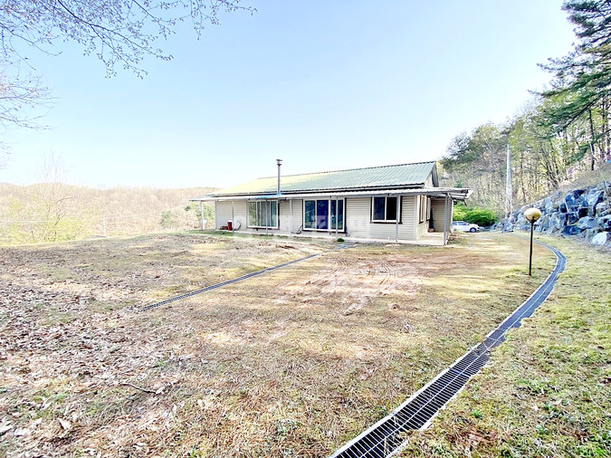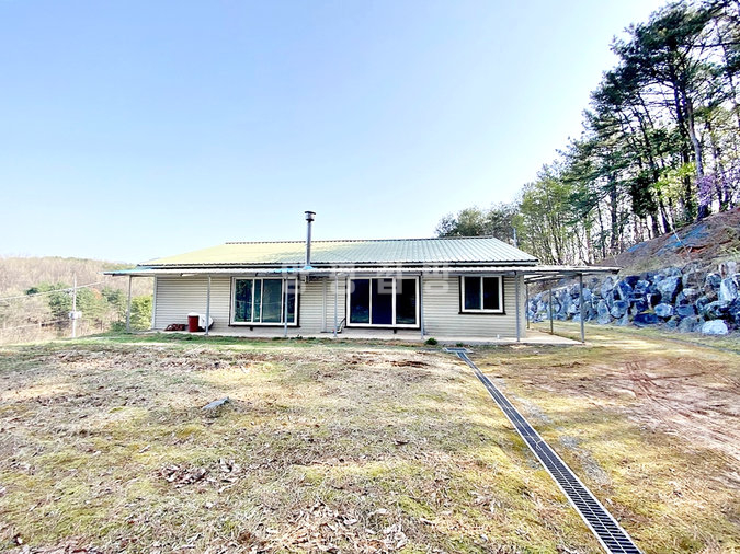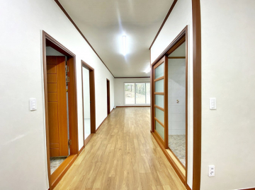 이 주택은 2008년에 준공된 경량철골 구조의 단층 건물로, 연면적 약 58평의 대형 평수를 자랑합니다. 본래 두 세대가 거주할 수 있도록 설계된 공간을 하나로 통합하여 방이 5개나 되는 넉넉한 구조를 갖추고 있습니다. 넓은 거실 중앙에는 벽난로가 설치되어 있어 전원의 운치를 더해주며, 주방과 현관, 보일러실이 각각 두 곳씩 배치되어 있어 공간 분리 활용이나 대가족 거주에도 적합합니다.